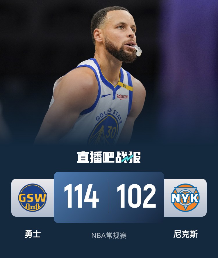 库里28+7+9 巴特勒19分 布伦森25+7 勇士终结尼克斯3连胜